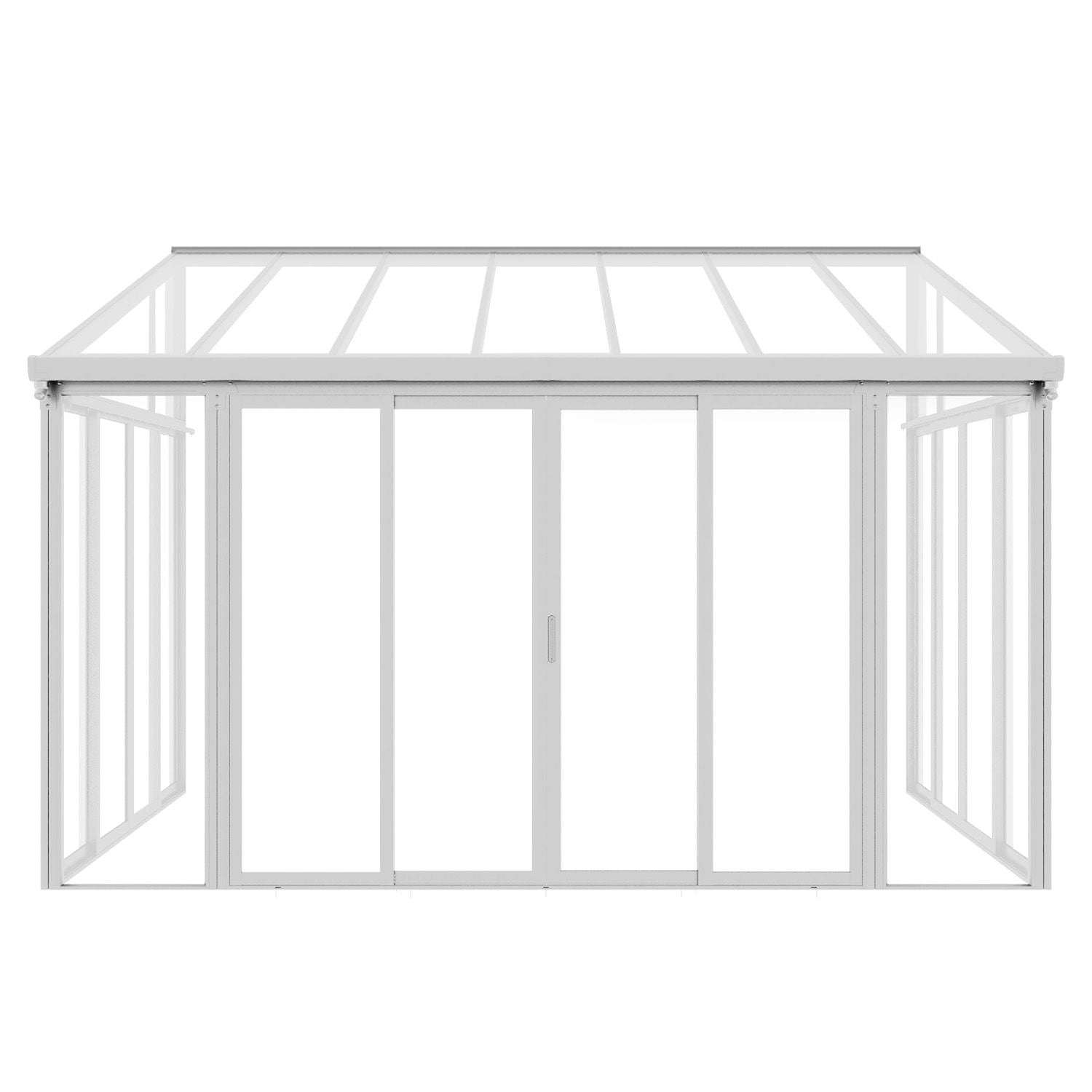 Mit 3 Doppel-Schiebetüren und kristallklaren Scheiben